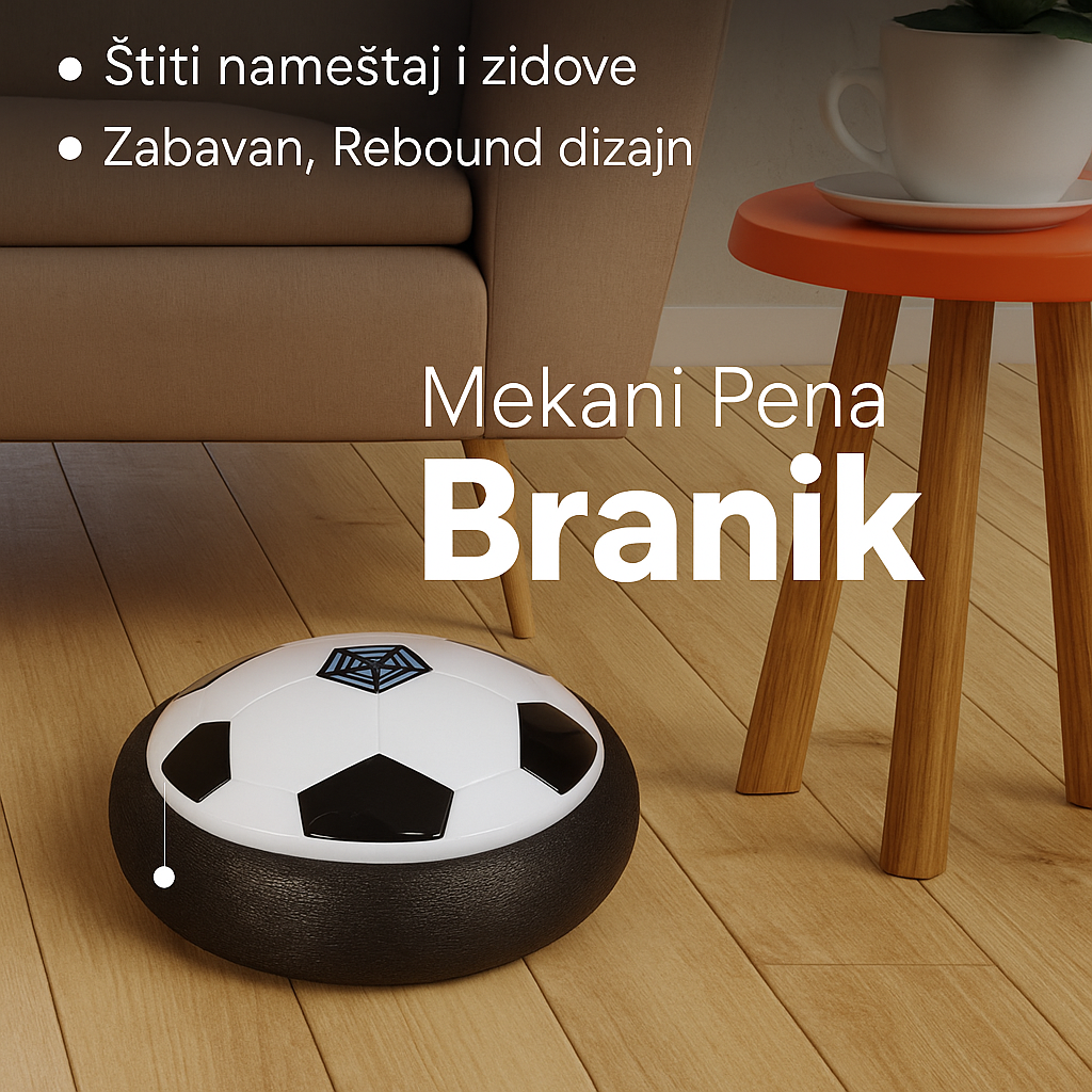LED Hover Fudbal kombinuje fudbal i air-hockey — lopta klizi po vazdušnom jastuku, svetli u više boja i potpuno je bezbedna za kućnu igru. Idealna je za decu 3+ godina, kao i za roditelje koji žele zabavu u stanu.